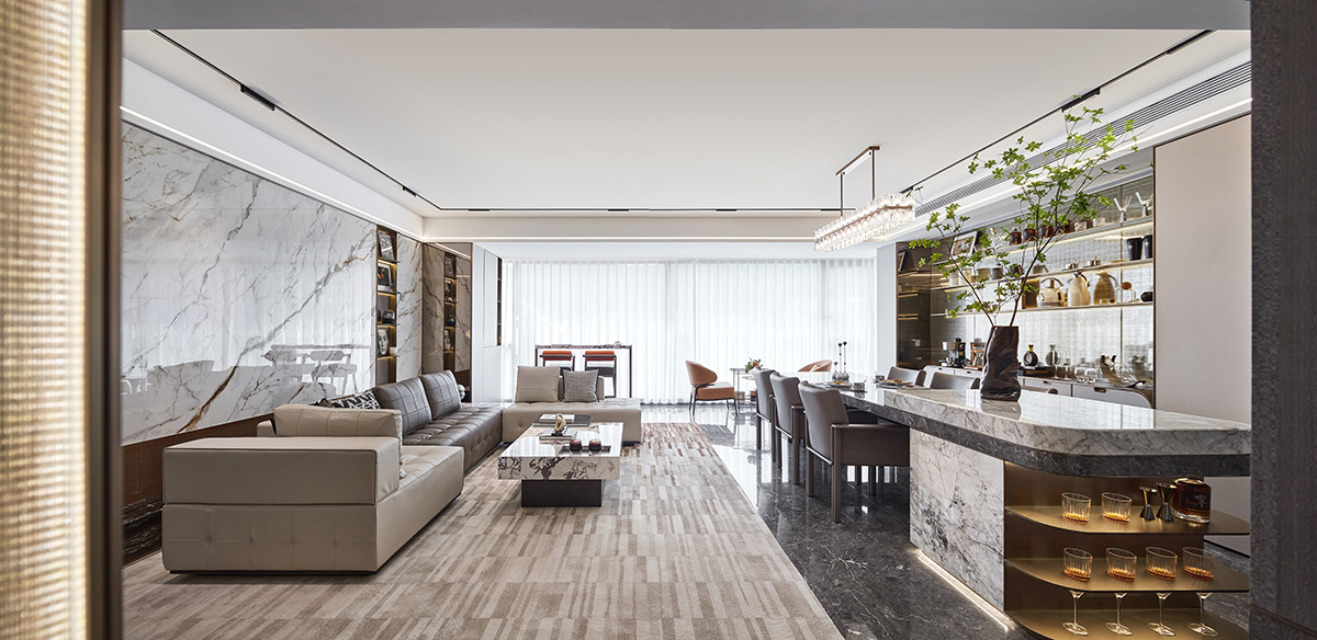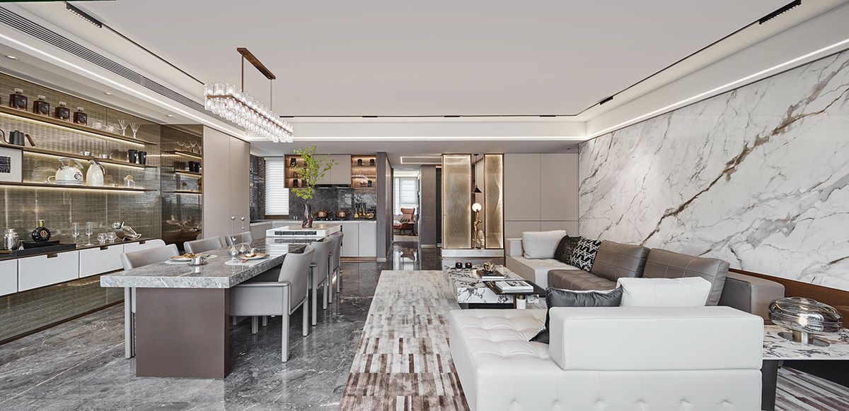 本案位於浙江溫嶺-雲樾玖溪,享有一線河景,為終極改(gǎi)善家庭提供(gòng)劃時代的人居(jū)典範。設計風(fēng)格奢華,采用多樣的肌理和材質,營(yíng)造了寬鬆(sōng)自在的生活氛圍,創(chuàng)造(zào)了通透雅致的居住環境。