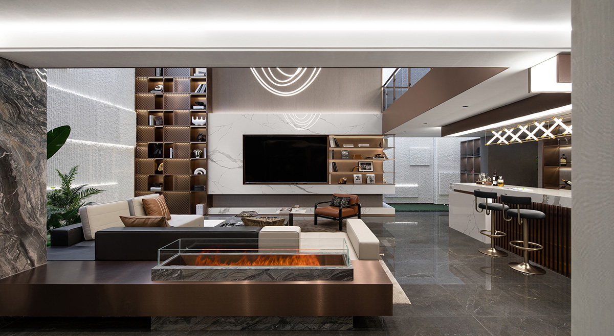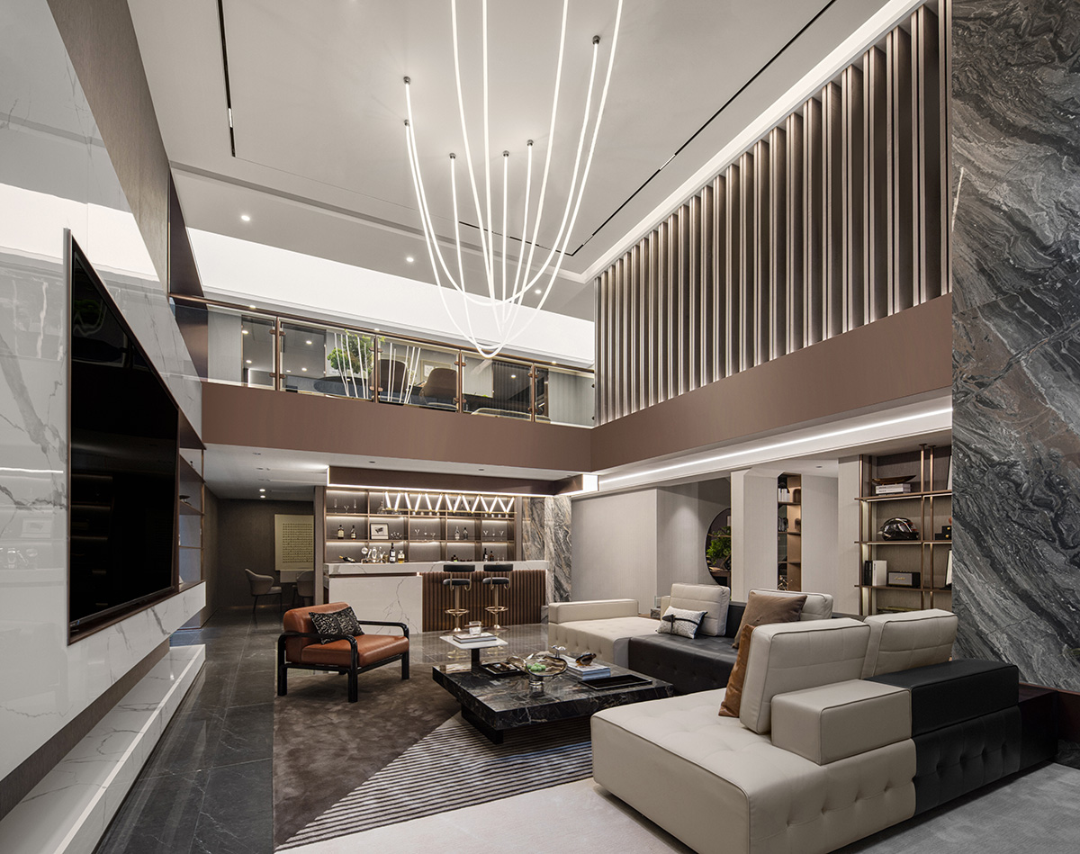 本案設計以現代雅奢和意式美學作為創(chuàng)作的核心理念,塑造自然與空間共融的怡然天地,喚醒其對理想生活的無限遐想,為首府(fǔ)城市精英圈層(céng)定製收藏級的“ 城市藝(yì)術品 ”。