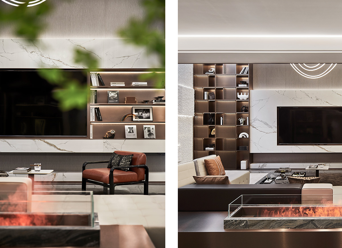 整個空間(jiān)擁有舒展的橫(héng)縱向穿插的開闊空間,無縫連接品茶區、會客區、品酒區及娛樂區。每一寸空間(jiān),都散發著精(jīng)致與高貴(guì)的氣(qì)息(xī),令人陶醉。