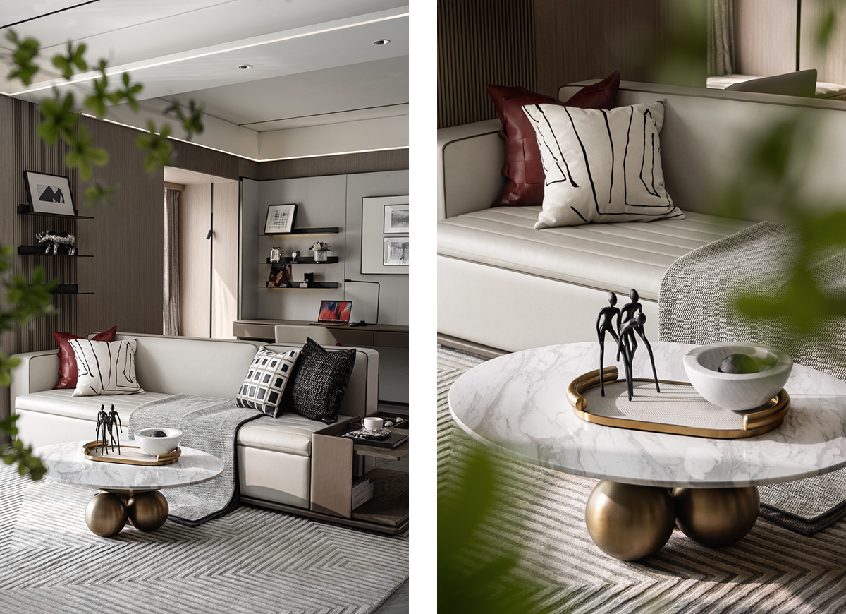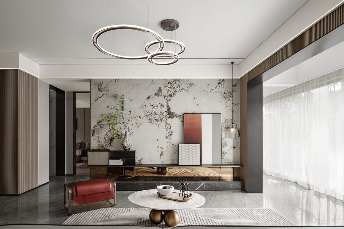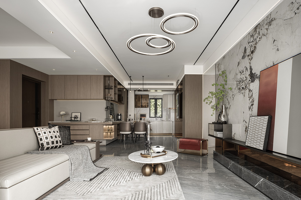 本案設計以奢享“高定(dìng)”生活為基調(diào),對每一處(chù)空間進行了細致入微的雕琢,從(cóng)而塑造出一個既高雅又不失溫馨的生活場景。