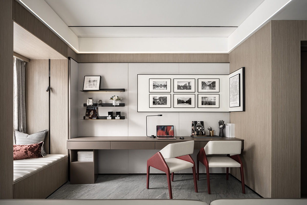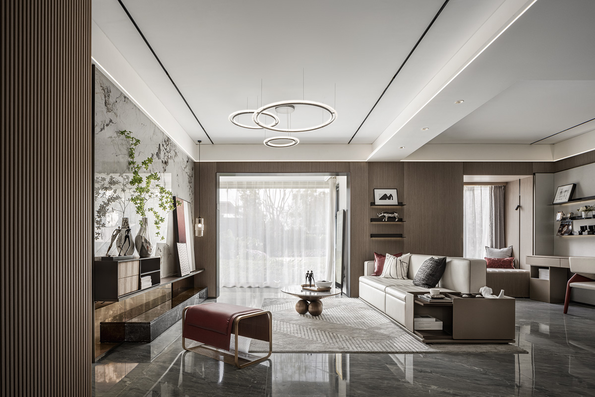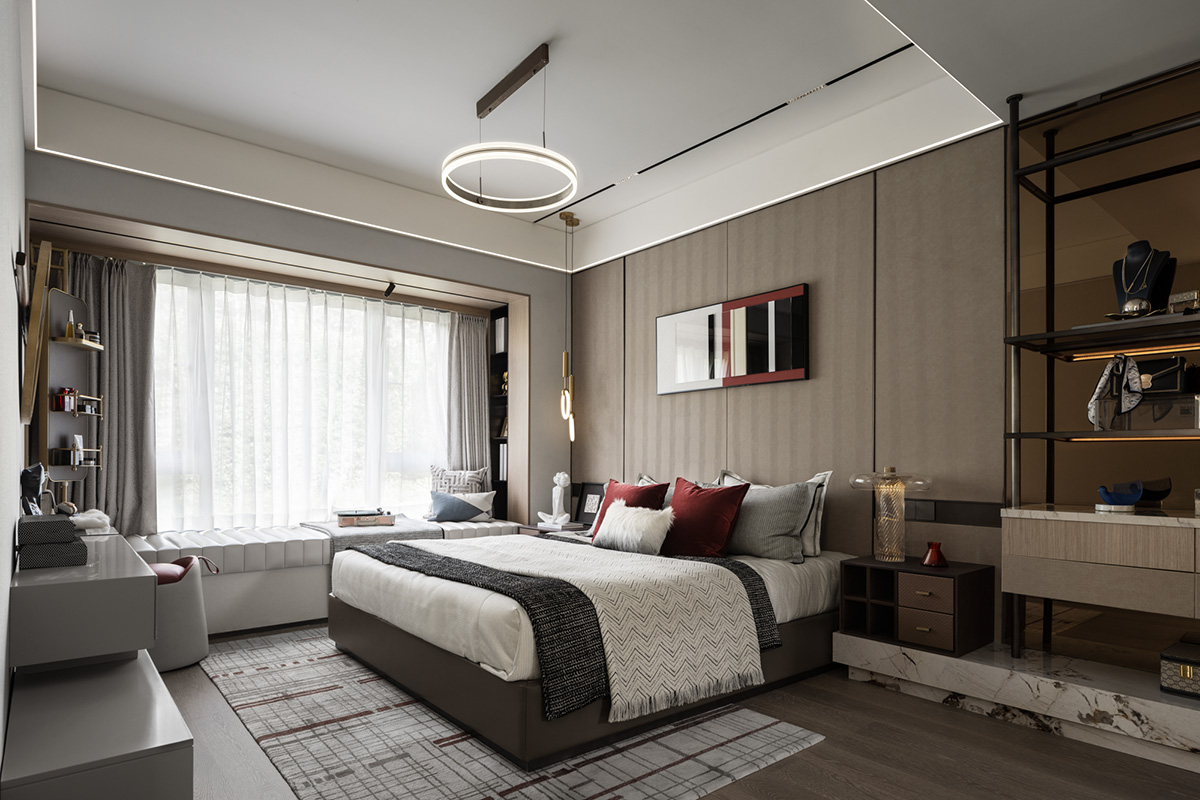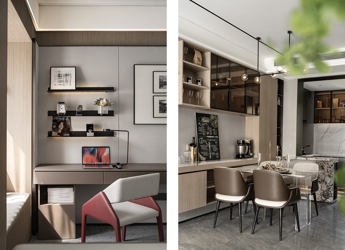 本案設計以奢享“高定(dìng)”生活為基調(diào),對每一處(chù)空間進行了細致入微的雕琢,從(cóng)而塑造出一個既高雅又不失溫馨的生活場景。