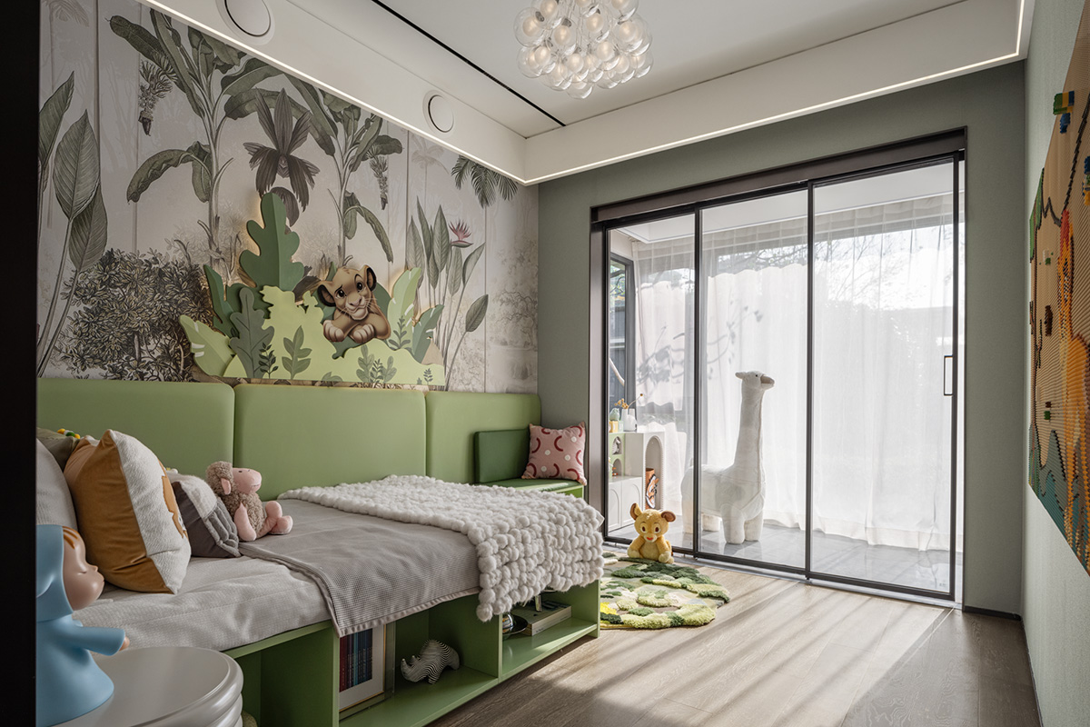 簡單塊狀沙發,將客廳不露聲色分割成兩份,“動(dòng)與靜”,社交與獨享的界麵來回穿插。"動"之地(dì),社交之場,家(jiā)室變身聚會之所,小酌淺飲、談笑風生、電影遊戲,皆可在沙(shā)發之(zhī)上,或直接席地而坐(zuò),享受輕鬆時刻。當“靜”享空間時,獨享客(kè)廳的一角,皮質與柔軟布藝的交織觸感,宛如置身於一個陽光明(míng)媚的午後,讓人沉醉其中,無法自拔。