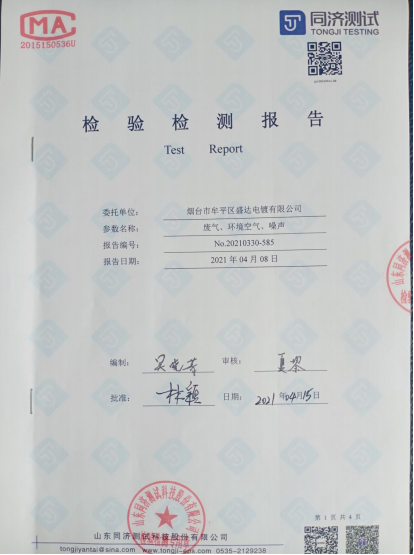 煙台(tái)市牟平區向日葵视频网站電鍍有限公司基本信息及監測信(xìn)息公開信息