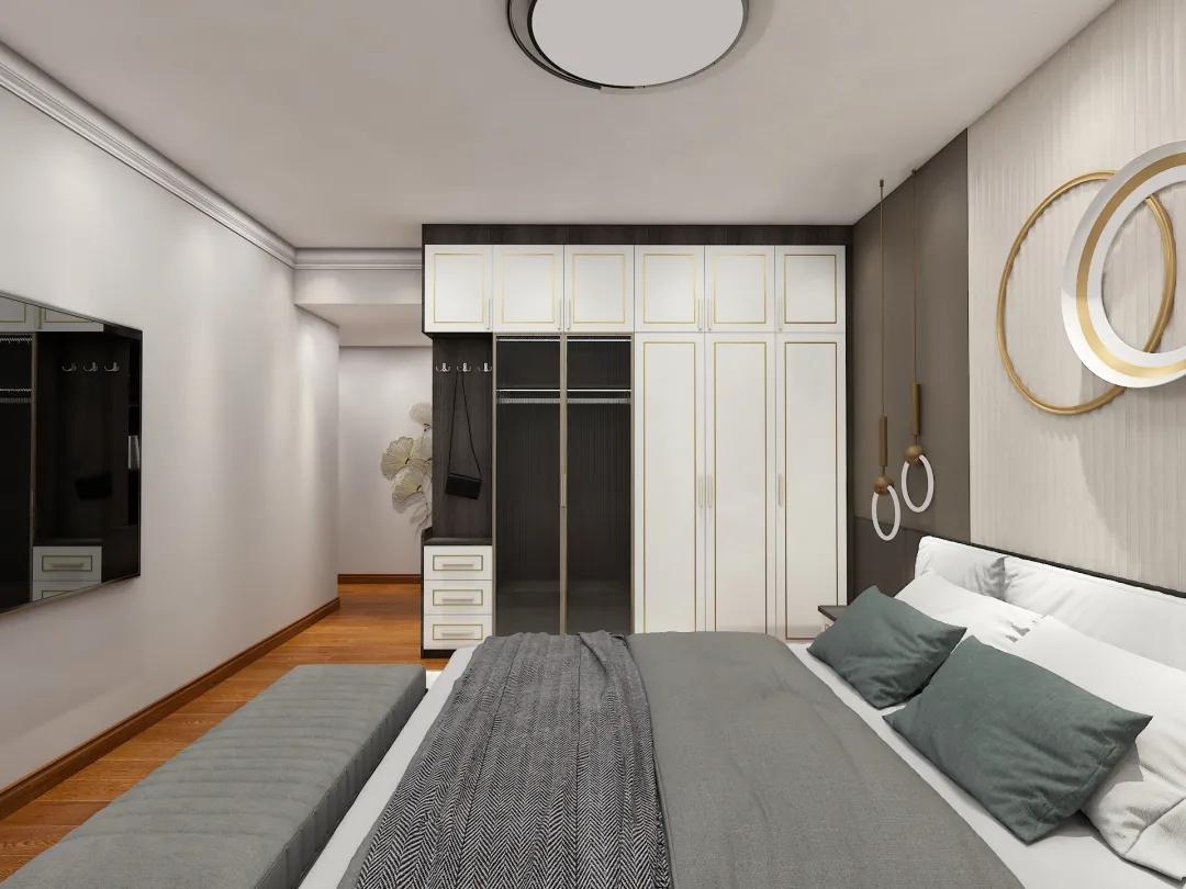 設計理念:利用戶型格局提高收納空間;深(shēn)淺顏色的搭配增加整(zhěng)體的層次感,加上橙色的點綴,提亮整體色彩,讓整體更加溫(wēn)馨,舒適。