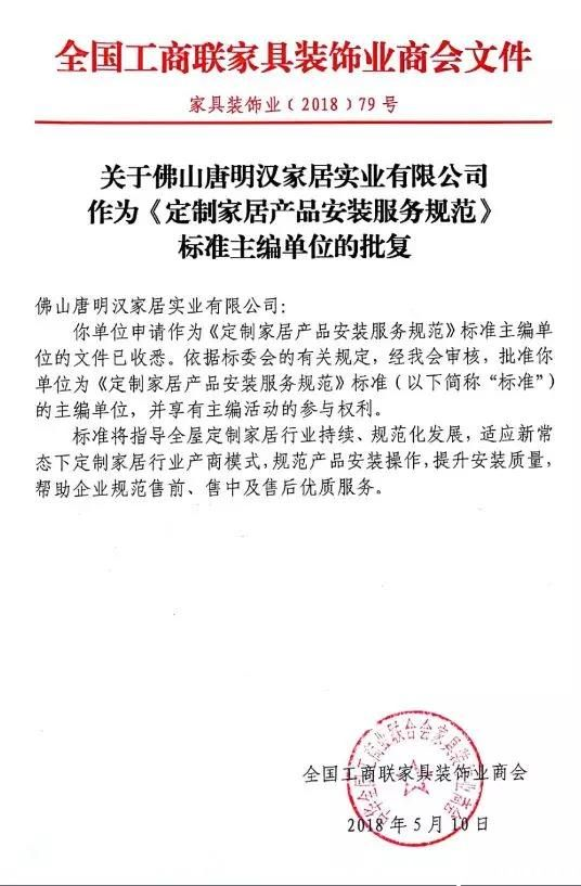 為指導(dǎo)定製家居行業(yè)持續、規範化發展,適應新常態下定製家居行業產商模式,2018年7月9日上午在廣州建博會期間召開《定(dìng)製家居產品安裝服務規範》標準啟動會暨編製組第一次會議。該標準於2018年3月份正式立項,由全國工商聯家具裝飾業商會牽頭與國家建築材料檢驗測試(shì)中心及行業優秀企業共同製訂,伊百(bǎi)麗全屋定製更是該標準的主編單(dān)位。