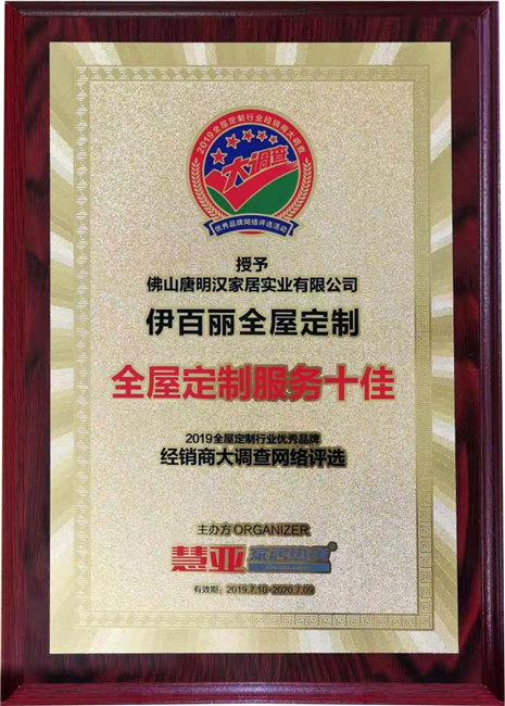 隨(suí)著定製行業的日漸發展和成熟,企業之間的競爭從產品品質,上升到服務品質等軟實力。丝瓜视频破解版全屋定製堅持秉承以用戶為中心的價值觀,為顧(gù)客提供七心(xīn)服務,獲得了眾多消費者、經銷商的高度認可。在20197月,伊百(bǎi)麗便榮獲2019全屋定製服務十佳品牌