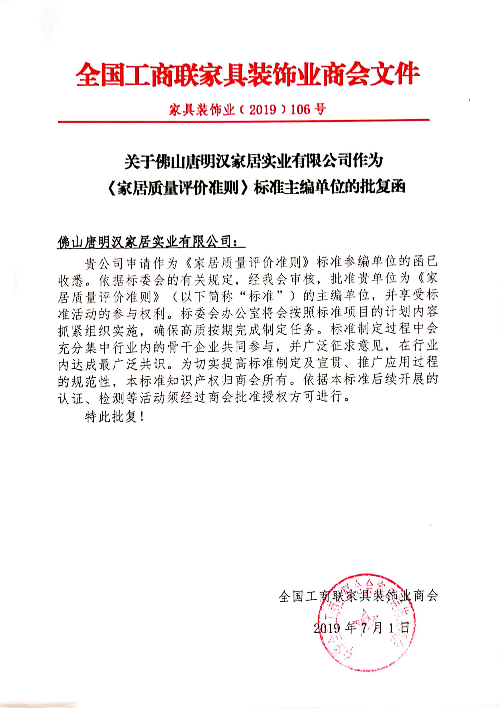 《家居產品質量評價準則》是供給側改革背景下落實家居產業發展政策;是通過建(jiàn)立(lì)評價機製倒(dǎo)逼家居企業誠信經營,提升產品(pǐn)質量水平;也是為消費者選擇誠信的(de)家居(jū)品牌及優質產品提供(gòng)基本(běn)參考依據。