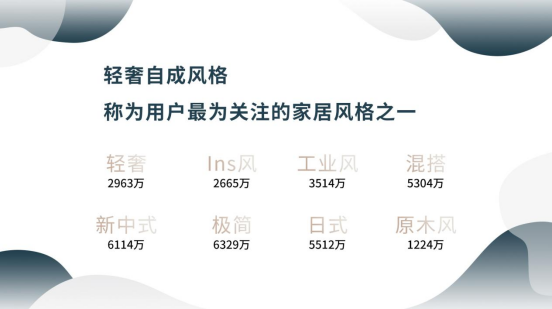 目前中國家庭戶均擁有1.5套住房,隨著國家放開二孩政策,中國房地產進入到改善型住房階段!同時隨著智能家居的興起和短視頻傳播的推(tuī)波助瀾,自2019年起市場上悄(qiāo)然興(xìng)起輕奢風尚,據巨量引擎發布《2020輕奢定製白皮書》顯示,輕奢已經(jīng)自成風格,且已成為大眾最為關注的家居風格之一(yī)。根據《2018中國新興中(zhōng)產階層財富白皮書》研究顯(xiǎn)示,家庭年收入在30萬以上的人群占比41%,而且當下的消費者也更願意(yì)也(yě)更有能力為好設計買單。在針對國(guó)內一二線(xiàn)城市的20-49歲家居消(xiāo)費決策者的調查中發現,新生代消費者未(wèi)來一年的裝修預算平均達25.4萬元,其中願意付出10-30萬元裝修預(yù)算的人(rén)數占(zhàn)比為56.3%,可見人們的家居(jū)消費能力也隨著對(duì)美好生活的向往而增(zēng)加。同(tóng)時在全部定製行業中逐漸細分出“輕奢定製”這一子類,從而形成高端定製、輕奢定(dìng)製、全屋定製等高中低分層。高定的客單值達到30萬以上目(mù)標人群主要是社會精英階層,輕奢定製的客單值在10-30萬之間主要目標人群是中產階級家庭,而全屋定製的客單值(zhí)在(zài)3-10萬之間目標人群主要是工薪階層。輕(qīng)奢定製已經成為可豪可親的一個新賽道!