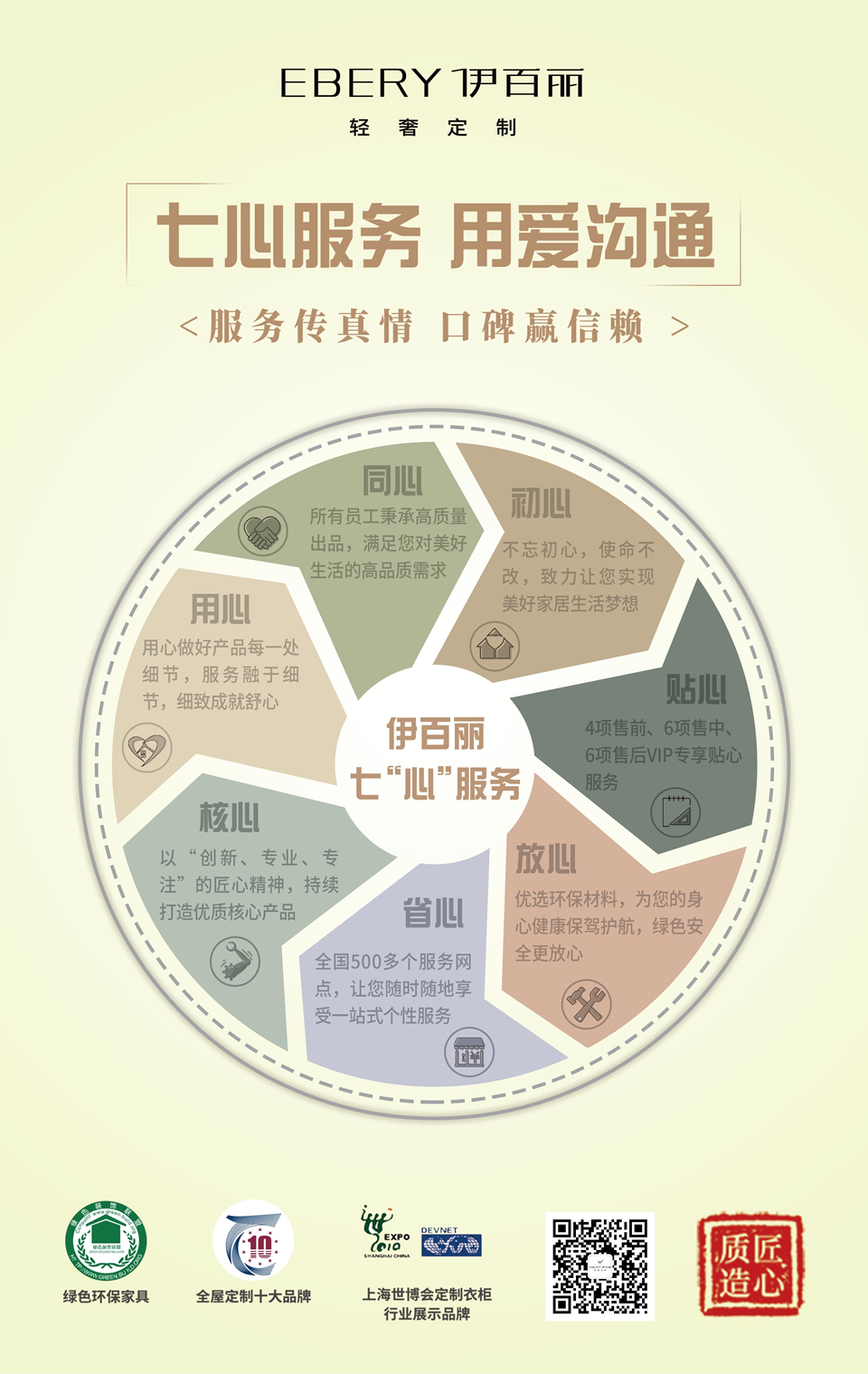 服務傳真情,口碑贏信賴。不論什麽產品,隻有滿足客戶需求、客戶滿意(yì)才能體現產品(pǐn)的(de)價值。“省心更放心”的(de)丝瓜视频破解版七“心”級服務貫穿於整個消費全程,讓客戶隨時(shí)隨地都能(néng)享受到丝瓜视频破解版高標準(zhǔn)的服務,為消費者提供一體化的(de)整裝家居解決方案。在市場競爭中形成差(chà)異化服(fú)務優勢,讓消費者買得舒心(xīn),用得放(fàng)心。