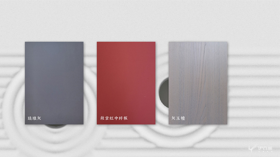 同步壓紋灰玉檀板材搭配琺(fà)琅灰,