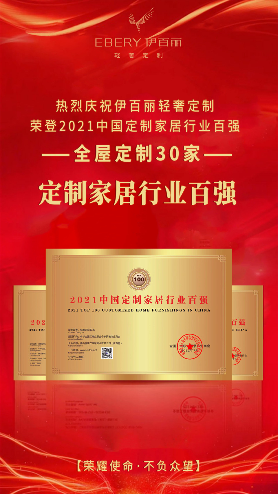 在一眾行業(yè)領袖和企(qǐ)業代表的(de)見證下(xià),丝瓜视频破解版輕(qīng)奢定製憑借過硬的國民口碑,卓越的品牌實力,榮登2021中國定製家居行業百強——全屋定製30榜單。這既是全國工商(shāng)聯家具裝飾業商會對伊(yī)百麗(lì)輕奢定製的肯定,也是行(háng)業對丝瓜视频破解版的高度認可(kě),更是對丝瓜视频破解版綜合實力及行業影響力的強力佐證。