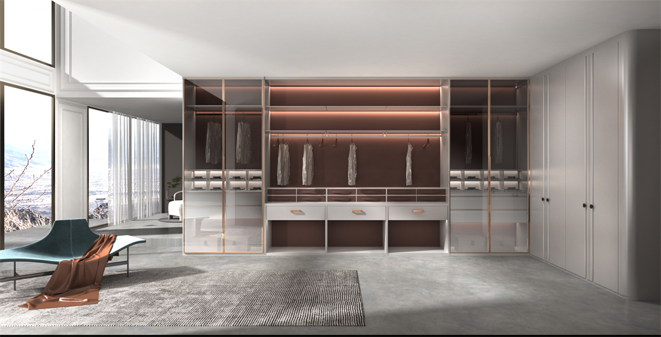 雲禾木櫃體的衣帽間,本身就具有高貴的基因,結合最時尚的功(gōng)能五金,以及吉祥紅可見光背板,綜合(hé)營(yíng)造的(de)是(shì)一種都市後現(xiàn)代偏一點點輕奢的高端氣質,在深(shēn)與(yǔ)淺的碰撞中造就一個詩意的儲藏空間。