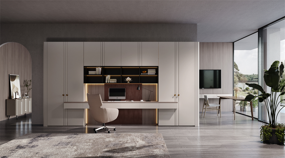 書房空間因融入了更多的家(jiā)居功能,空間美感亦溫暖而來!書櫃+書桌/電腦桌自成一體的設計,無論(lùn)是閱讀(dú)辦公,還是收納日(rì)常,讓空間呈現出了更多(duō)有趣的可能性和多元性。