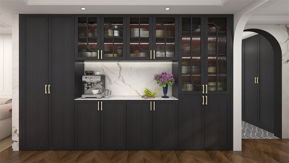 餐邊(biān)櫃的基材以奶油白和阿(ā)瑪(mǎ)尼白(bái)為主,配以(yǐ)精致的(de)金(jīn)屬拉(lā)手,氛圍感直接拉滿。封閉櫃、開放櫃有機(jī)組合,櫃(guì)子內嵌燈帶設計,搭配法式經典弧型長虹(hóng)玻璃門,將雅致和(hé)浪漫無界銜(xián)接,開啟超越“展”與“藏”的生活方式。