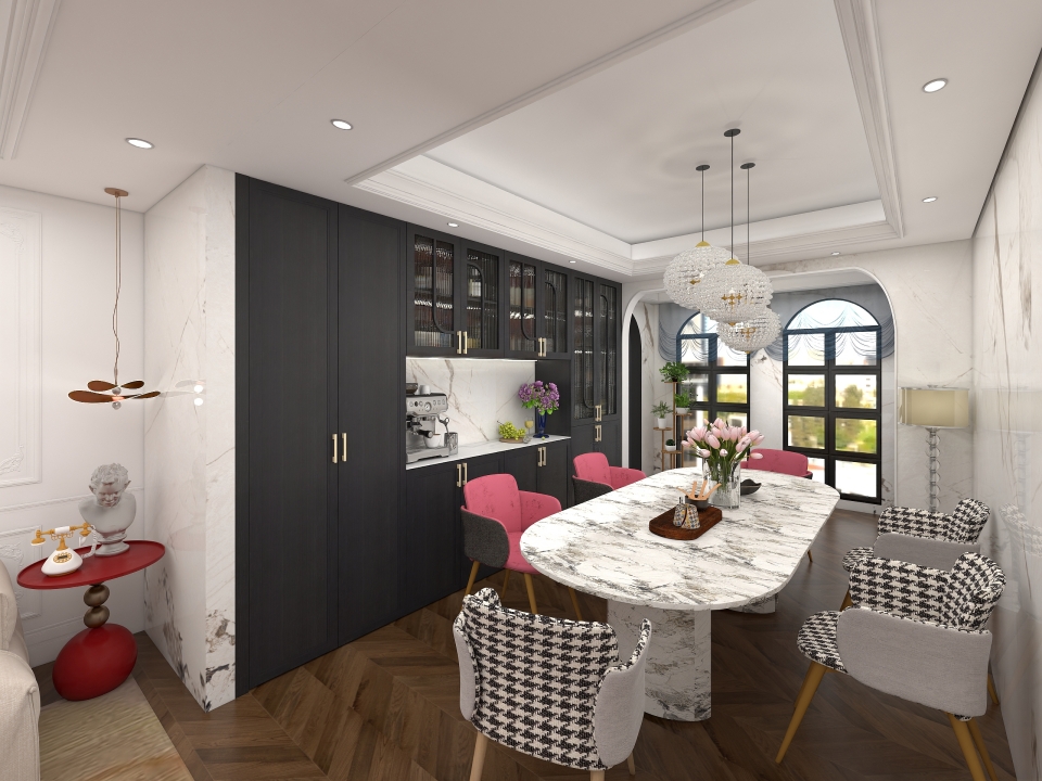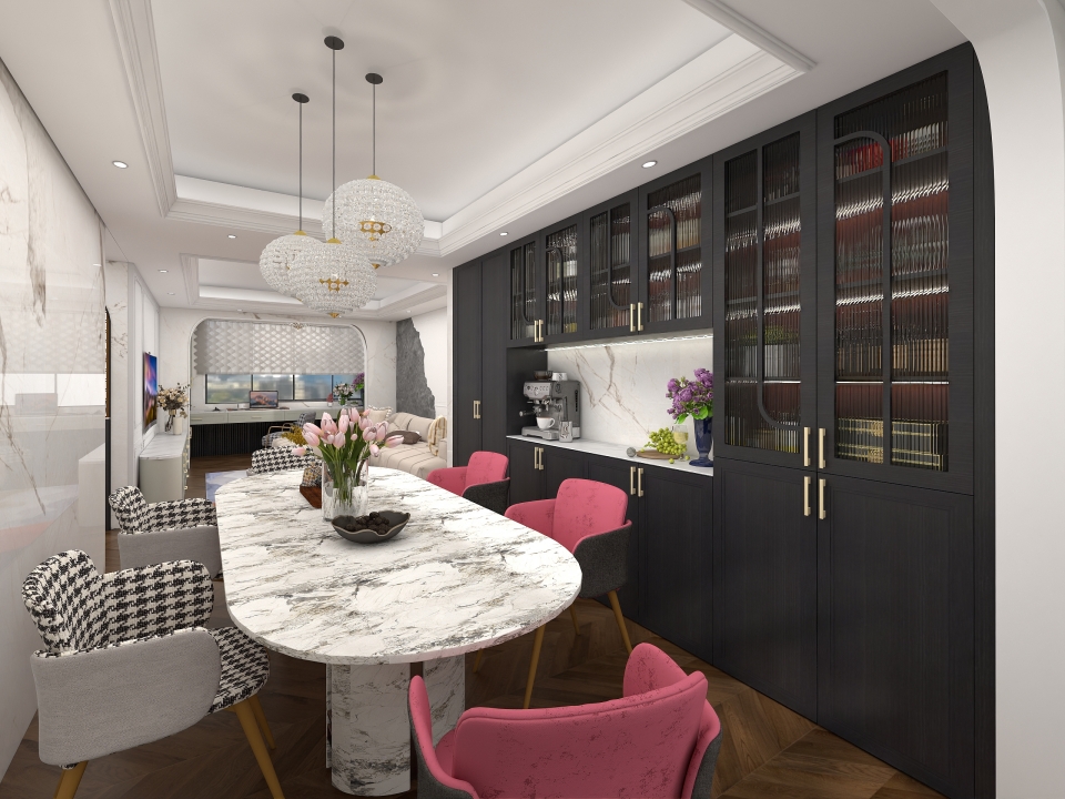 在追求顏值與實用兼具的時代,客餐廳一體設計,已成為家居空間的主流趨勢,並受到更多家庭的認可。兩個不分彼此的餐客雙廳暢連,動靜分區,呈現出大氣(qì)、整體的效果(guǒ),符合當代人對社交、喜好多樣性的需求。
