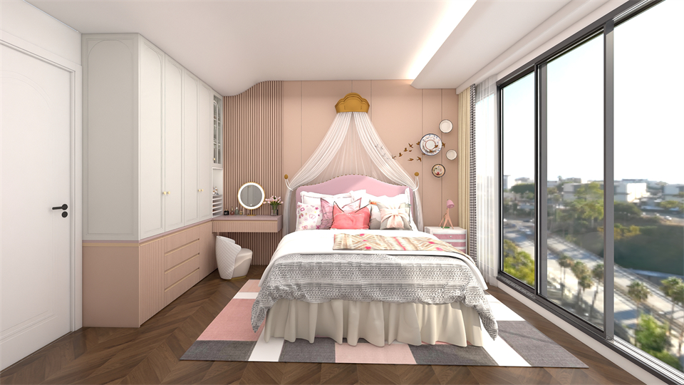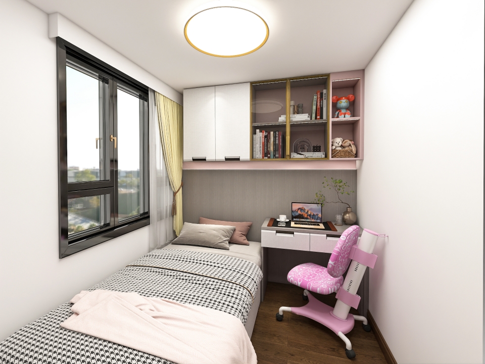 定製榻榻米+書桌櫃一體(tǐ)式設計,在節約空間的同時(shí),還擁(yōng)有學習、儲物、展示的基本功能,輕鬆滿足小公主在不同成長階段的需(xū)求。刺繡銀櫃門與馬卡龍粉櫃體巧妙搭配,營造甜而(ér)不膩的學(xué)習、寢居空間。吊式書櫃封閉與半開放設計,或開放或掩(yǎn)映,豐富的色彩和合理的收納布局,讓女兒的成長擁有(yǒu)充分的(de)安全感(gǎn)。