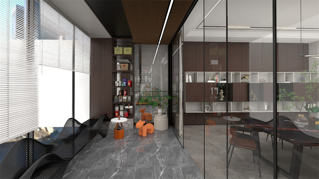 設計師將陽台與室內空間連通(tōng),左右兩側定製儲(chǔ)物櫃(guì),展示茶葉、藏品,在含蓄中表達主人對品(pǐn)質與(yǔ)細節的追求。大氣的刺胡桃圓弧櫃嵌入層(céng)板,與開放式展示櫃遙相呼(hū)應,舉目皆是氣質與大(dà)美(měi)。