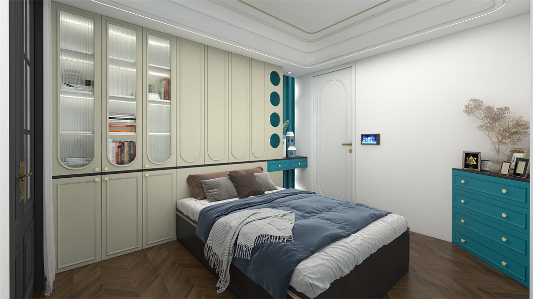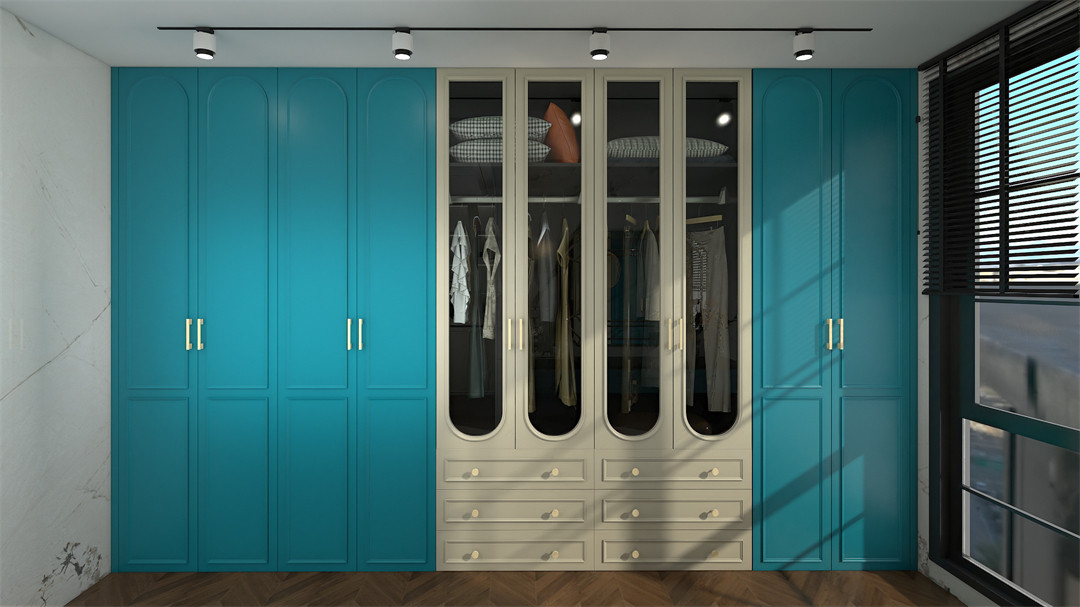 以親和(hé)力(lì)十足的EO097-阿瑪(mǎ)尼深藍高門,搭配質感(gǎn)拉手,讓整個空間充滿安寧感和設(shè)計感。到頂式衣櫃容量豐富,輕鬆裝下家人不同時期的衣物,有顏又實用,讓生活空間回歸安寧無雜。
