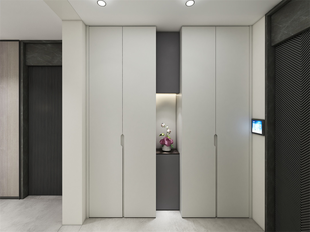 滿目的卡其灰點亮(liàng)糅合幹淨通透的入戶格調,進門(mén)即感受到一種溫柔(róu)又放鬆的氛圍。滿牆式玄關高櫃留足儲物(wù)空間,輕鬆滿(mǎn)足全(quán)家入戶收納;中部櫃體(tǐ)進退設(shè)計,於平衡收納與展示中,展現主人(rén)對品質生活的追求(qiú)。