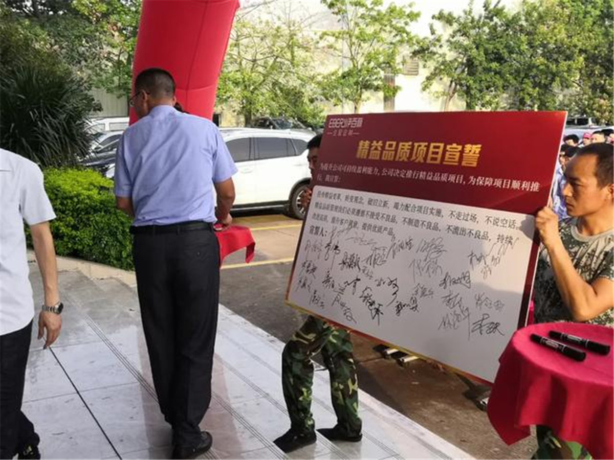 全體伊百(bǎi)麗人(rén)積極投身精益變革,轉變觀念,破舊立新,竭力配合項(xiàng)目實施,不走過場,不說空話。精(jīng)益品質(zhì)管理下必須遵循不接受不良品,不製造不良品,不(bú)流出不良品的決心。持續改進品質(zhì),提升客戶滿意,提供優質產品(pǐn)。