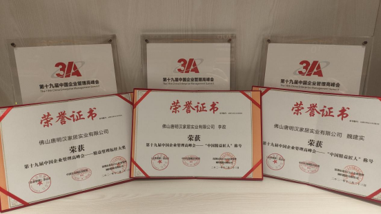 作為本屆高峰會的重頭戲,2021中國年(nián)度(dù)精益管理大獎在大會上正式公布,唐明漢家(jiā)居榮獲“2020-2021年度精益(yì)管理標杆企業大獎” ;車間主管李政、倉庫主管魏建實榮獲“中國精益匠人”稱號。